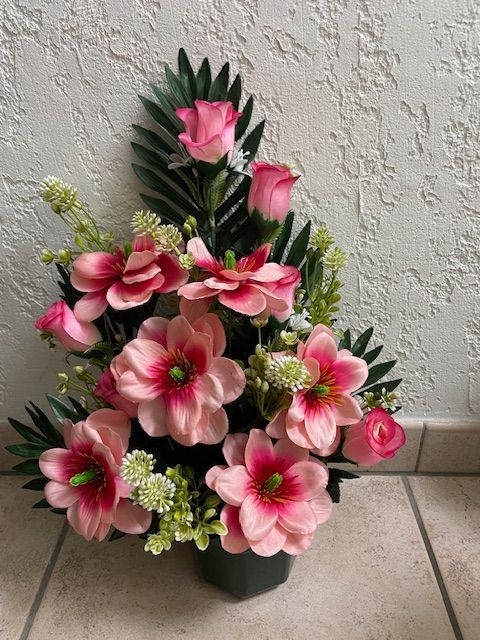 Afin de vous proposer une gamme complète de services funéraires, nous proposons aussi des compositions florales artificielles.