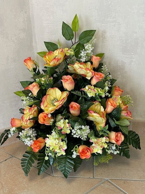Tout comme les fleurs naturelles, les fleurs artificielles sont disponibles en livraison. De même, nous réalisons le fleurissement régulier de monument en cas d'absence.