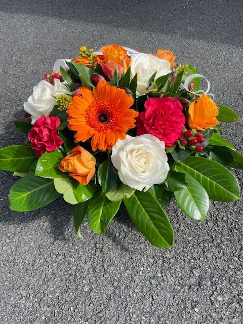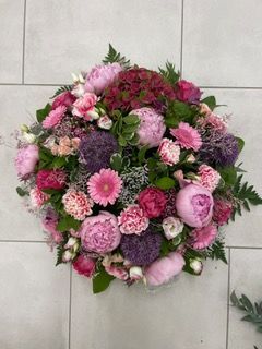 En fleurs naturelles, il nous est possible de vous proposer différents types de créations : bouquets, couronnes, coussin raquette, coussin rond, coussin en forme de cœur...