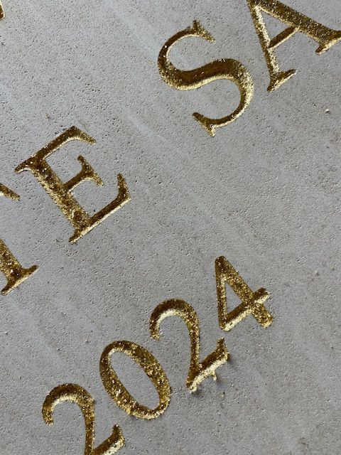 Nos artisans marbriers utilisent une sableuse à haute pression, pouvant graver le granit et d'autres matières. Grâce à un pochoir préalablement installé, nous pouvons graver des lettres ou des motifs. Nous réalisons ensuite une finition à la peinture ou à la feuille d'or. Il est aussi possible de laisser la gravure brute.